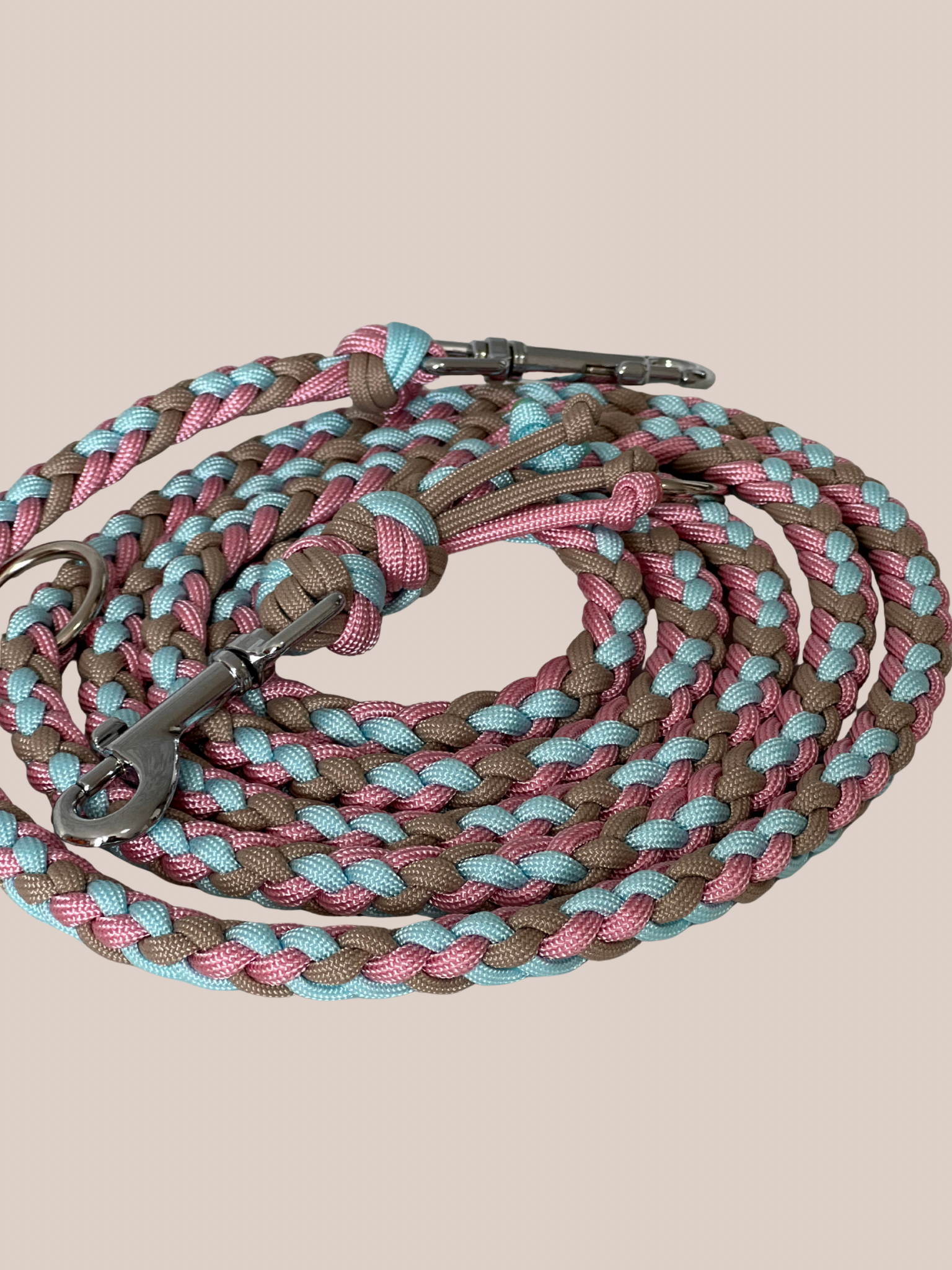 Unsere einzigartige individuell erstellbare, sowie 3-fach verstellbare Hundeleine aus hochwertigem Paracord ist ein absolutes Must-Have für Hundeliebhaber, die Qualität und Vielseitigkeit schätzen. Jede Leine wird mit liebevoller Sorgfalt von Hand gefertigt und bietet eine optimale Balance zwischen Komfort und Kontrolle bei Spaziergängen mit deinem geliebten Vierbeiner.