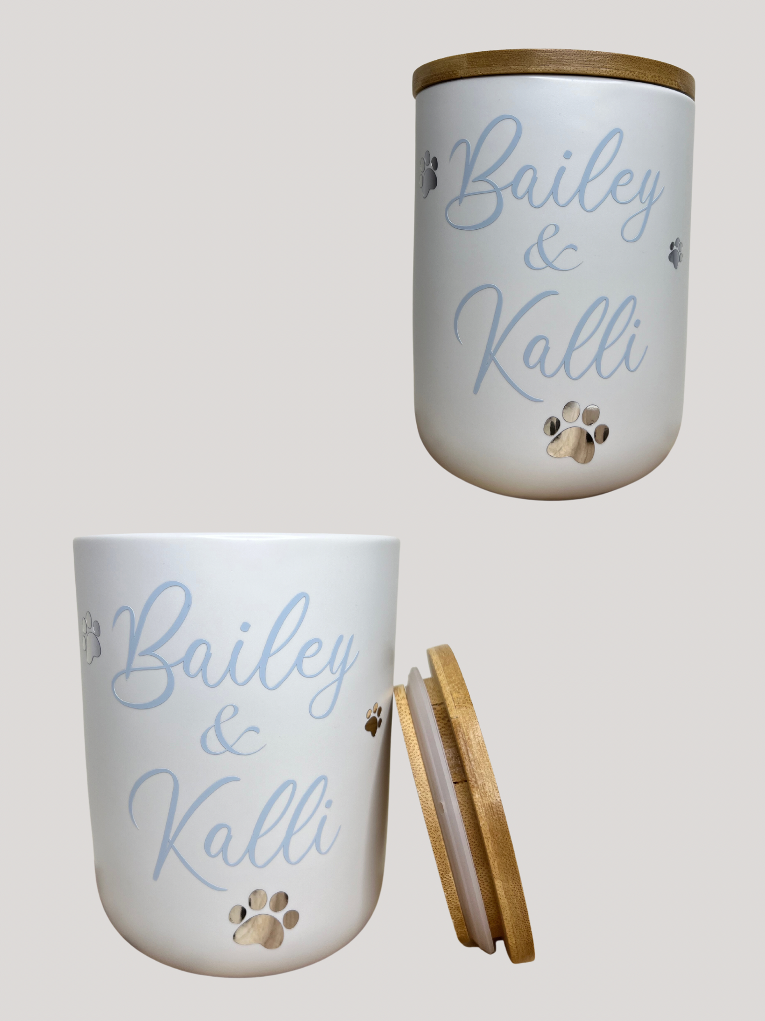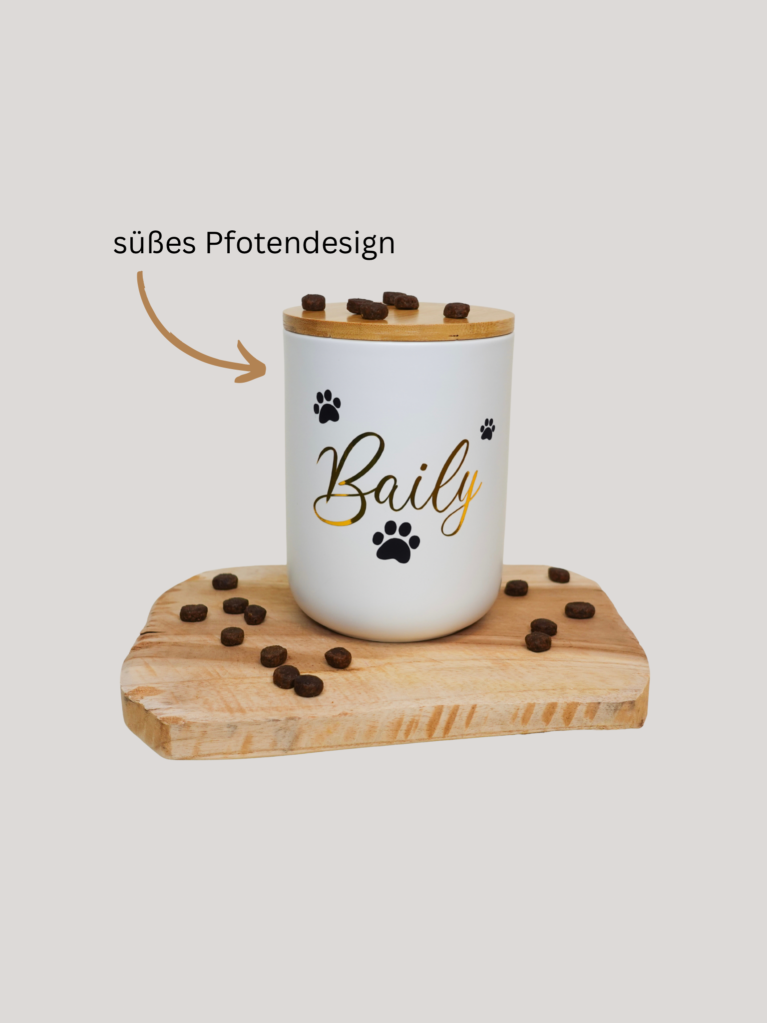 Die personalisierte Vorratsdose ist ideal, um sie mit den Lieblingssnacks deines Haustieres zu befüllen. So hast du diese immer parat und ersetzt den Verpackungsmüll durch eine wunderschöne Aufbewahrung.